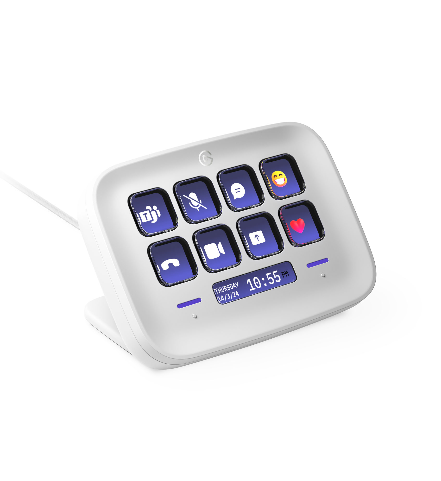 Großartige Workflows leicht gemacht. Das ist Stream Deck Neo, ein 8-Tasten-Controller, mit dessen Hilfe Sie Ihre täglichen Aufgaben beschleunigen. Automatisiere kleine wiederkehrende Aufgaben wie das Einfügen von Text oder Suchen in Ordnern, damit Sie sich auf die wichtigen Dinge fokussieren können. Tippen Sie auf die Tasten zum Steuern von Spotify oder Stummschalten des Mikrofons in Teams, selbst wenn die Apps nur im Hintergrund laufen. Passen Sie die Tasten nach Belieben ganz einfach per Drag & Drop in der kostenlosen Software für Windows und Mac an. Die Infobar zeigt Ihnen wichtige Informationen in Echtzeit an, und über die beiden Touch Points wechseln Sie zwischen zwei Aktions-Seiten. Die Anderen werden über Ihre Geschwindigkeit staunen.