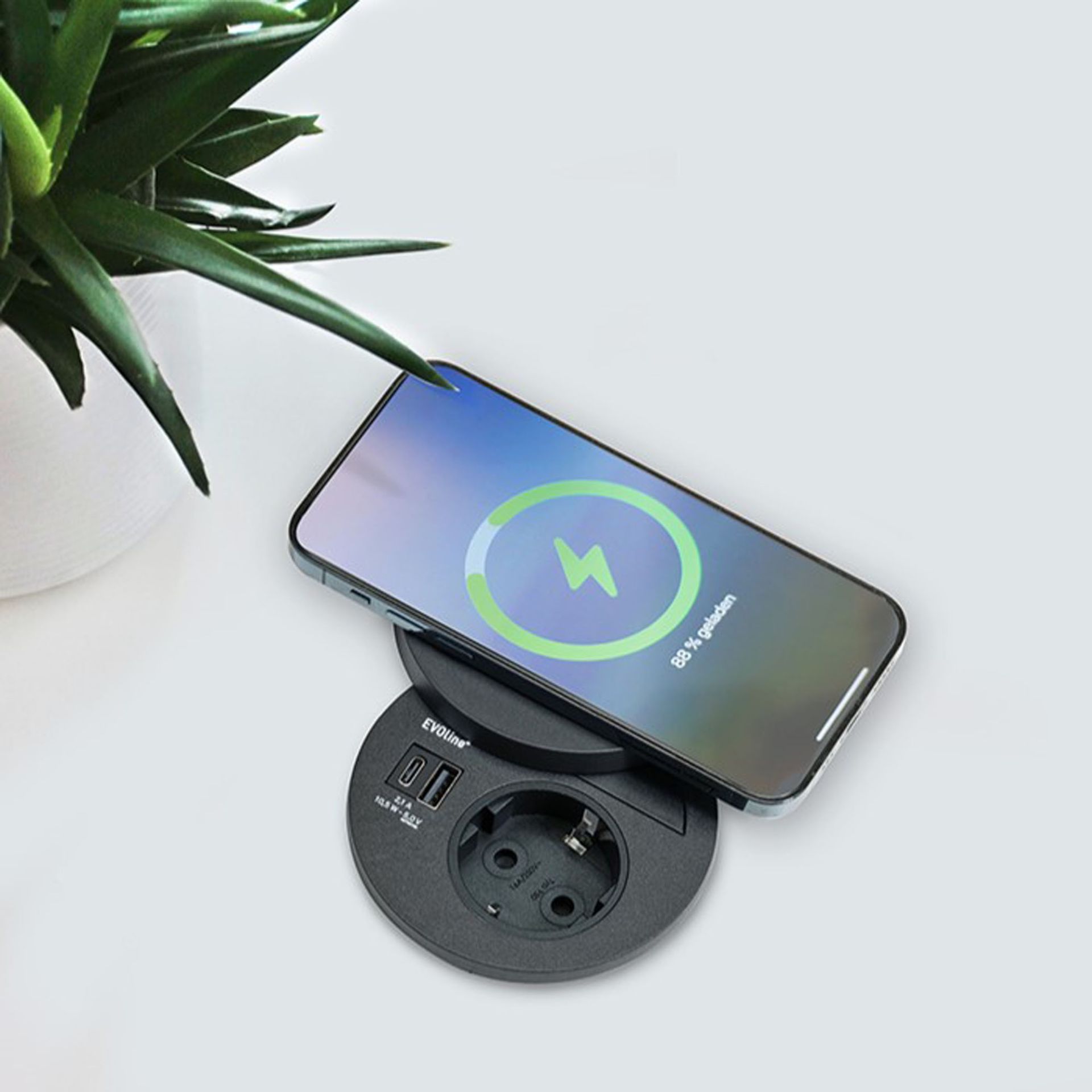 Ein kabelloses Ladegerät macht Kabelgewirr überflüssig und sorgt dafür, dass Ihre Geräte mit Strom versorgt werden, ohne zusätzlichen Platz auf dem Schreibtisch zu beanspruchen. Mit diesem eleganten Zubehör sind Ihr Telefon und andere Geräte leicht zugänglich, während es gleichzeitig für einen aufgeräumten und effizienten Arbeitsplatz sorgt.