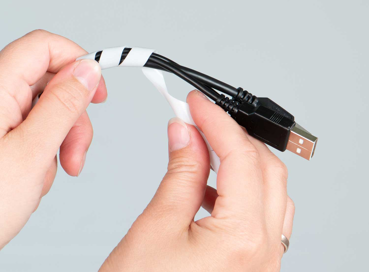 - Kabelspiralen sind in weiß und schwarz und in weiteren Farben erhältlich