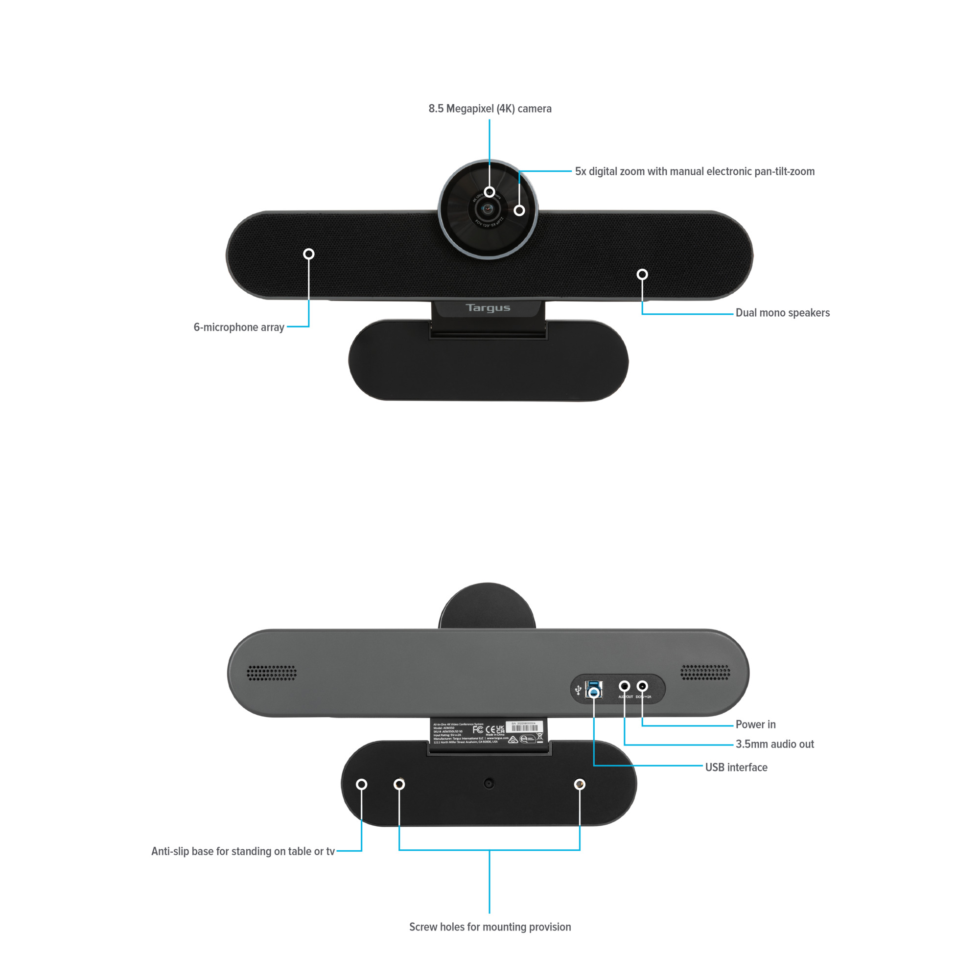 Das Targus All-in-One 4K-Videokonferenzsystem bietet Ihnen alles, was Sie für professionelle Meetings in hybriden Arbeitsumgebungen brauchen. Mit gestochen scharfer 4K-Bildqualität, klarer Audioübertragung und einfacher Plug-and-Play-Installation ist es die perfekte Lösung für kleine bis mittelgroße Konferenzräume. Bleiben Sie mit Ihrem Team verbunden – egal, wo Sie sich befinden!